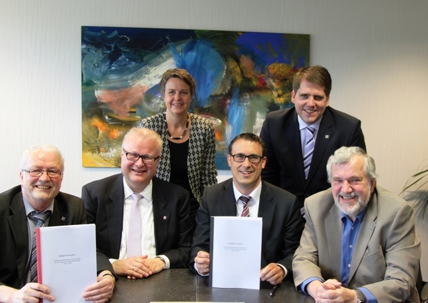 Der Koalitionsvertrag wurde von Sören Bartol, Dr. Thomas Schäfer, Werner Hesse und Werner Waßmuth als Vertreter der Parteien und Fraktionen unterschrieben. An der Unterzeichnung nahmen auch Landrätin Kirsten Fründt (SPD) und der Erste Kreisbeigeordnete Marian Zachow (CDU) teil.